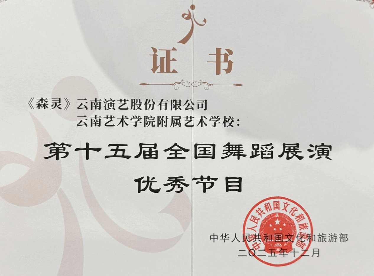 近日,由文化和旅游部主办的第十五届全国舞蹈展演在无锡圆满收官,云南艺术学院附属艺术学校与长期校企合作单位云南省演艺股份有限公司联合创演的舞蹈作品《森灵》在江苏省无锡市人民大会惊艳亮相,凭借鲜明的云南民族特色、精湛的艺术水准与深刻的文化底蕴,成功斩获优秀作品奖,充分彰显校企协同育人、聚力创演的独特优势,为云南艺术教育与文化产业深度融合写下亮眼答卷。